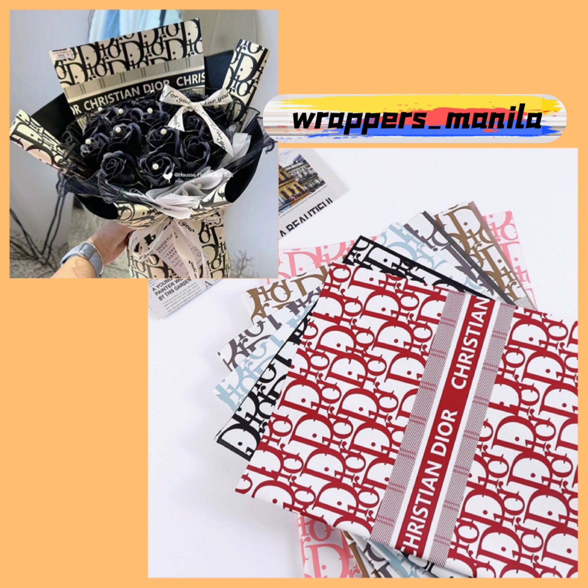 20pcs Double-Sided Dior Printed Wrappers Flower Bouquet Wrapping Paper